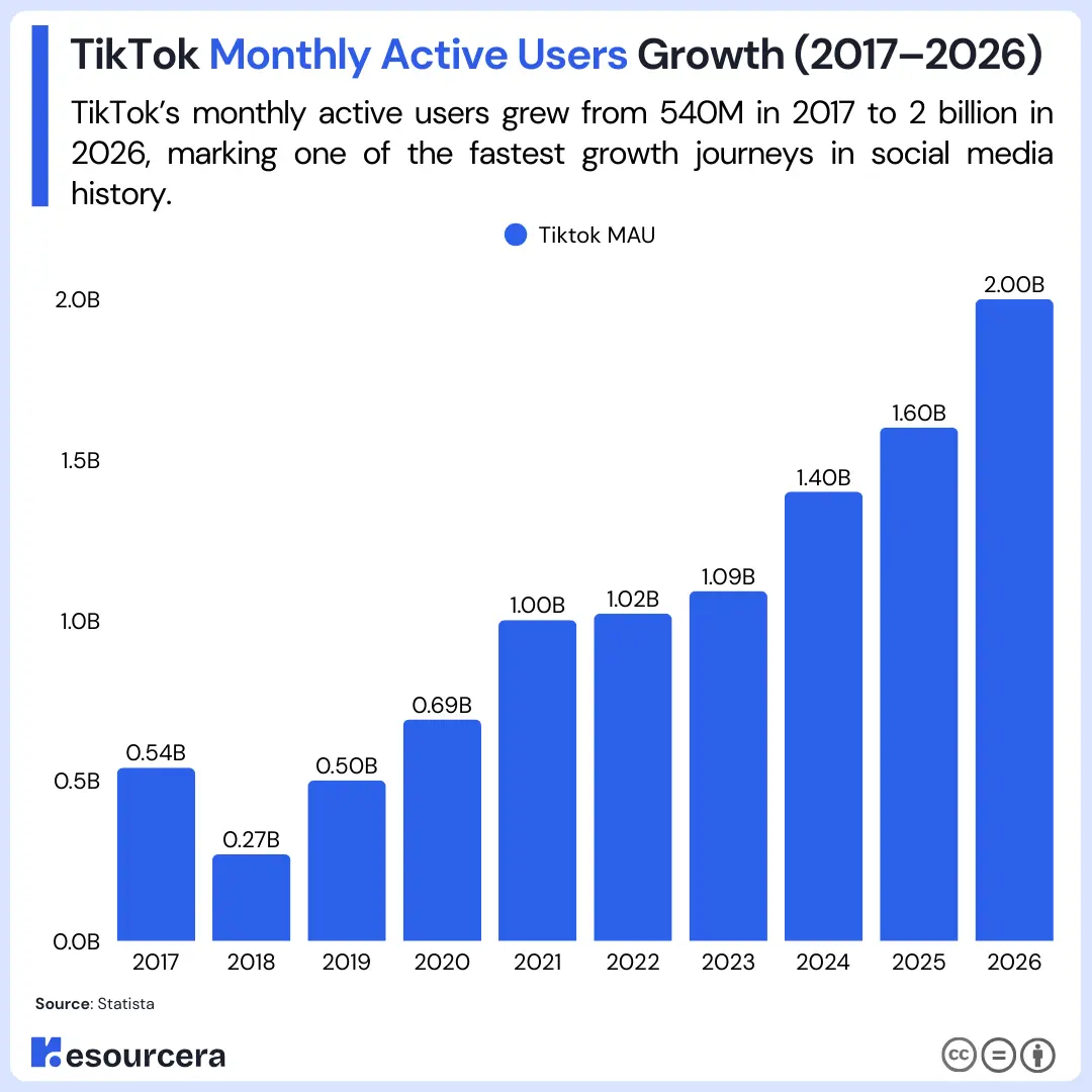 More Information →TikTok Monthly Active Users Growth 2017-2026