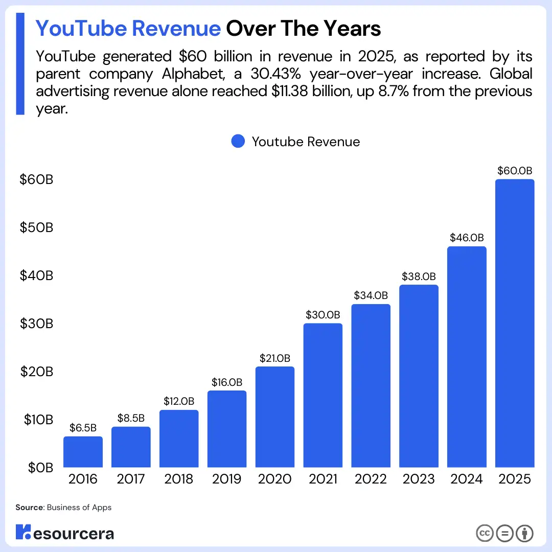 In 2025, YouTube's revenue reached over $60 billion, with advertising contributing around $40.36 billion to the total revenue. In fact, in the…