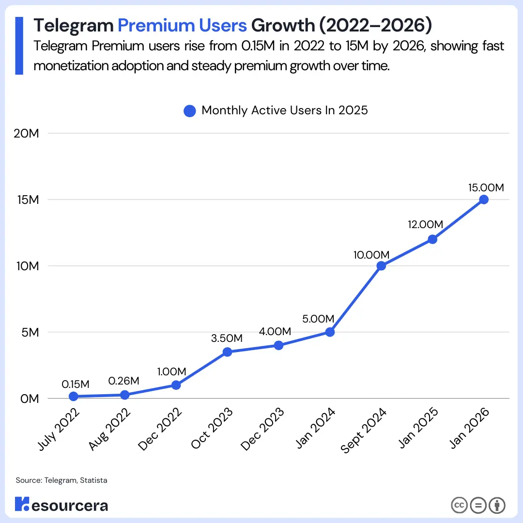 More Information →Telegram Premium subscriber growth reaching 15 million by 2026