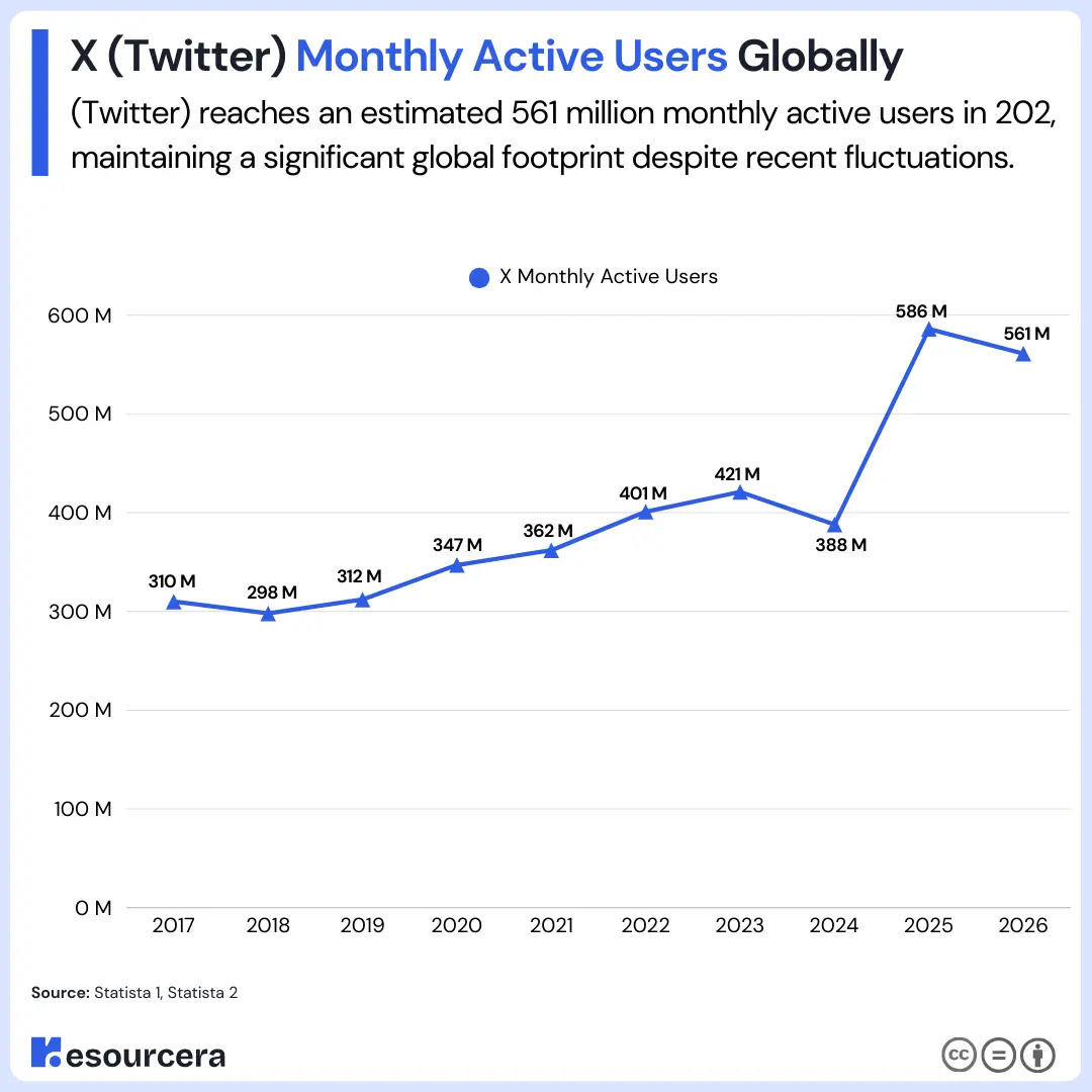 X (Twitter) ranks 15th in the list of the most popular social media platforms worldwide as of 2026, with over 561 million…