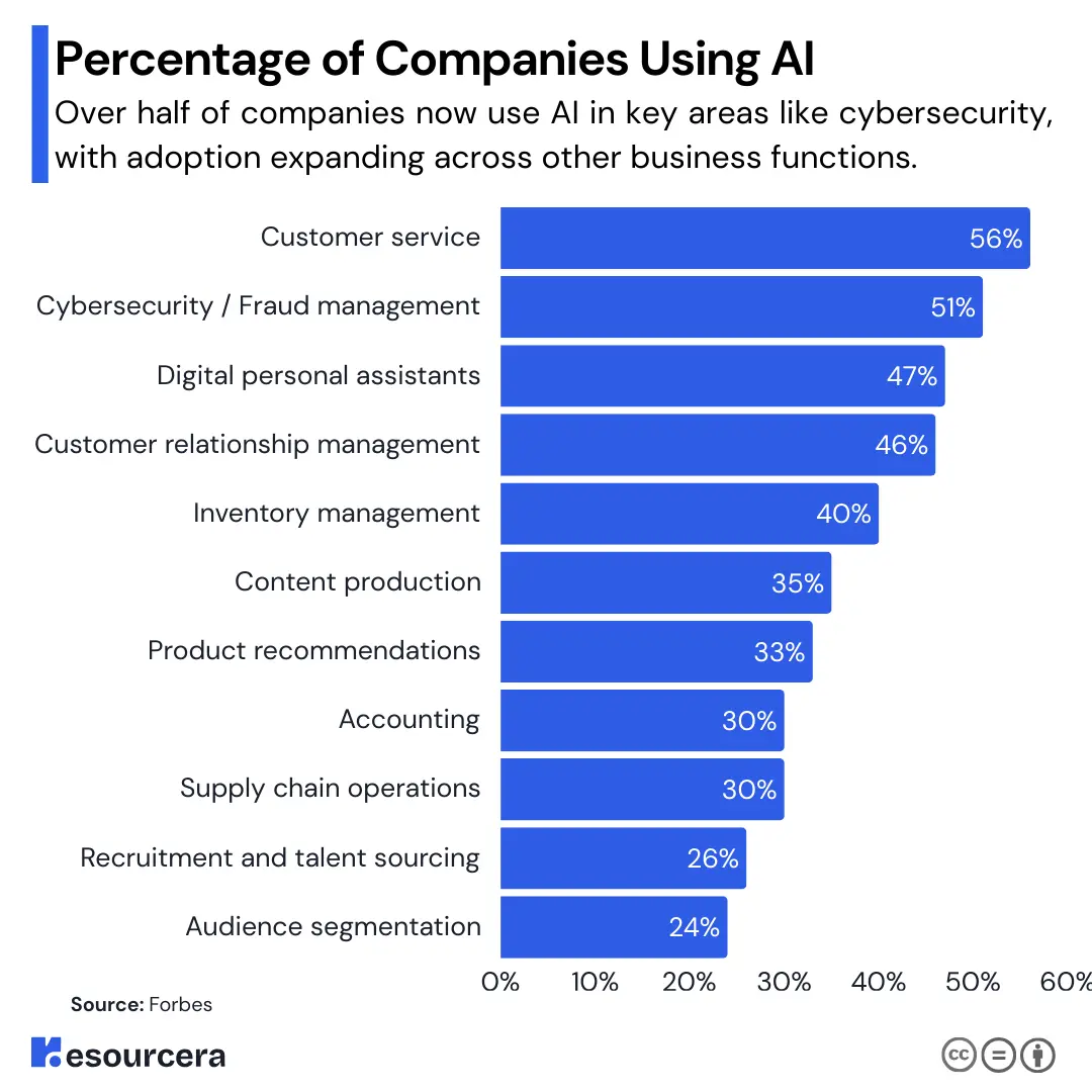 Currently, about 94% of companies worldwide use AI in at least one business operation. This is a significant jump from 2017, when…
