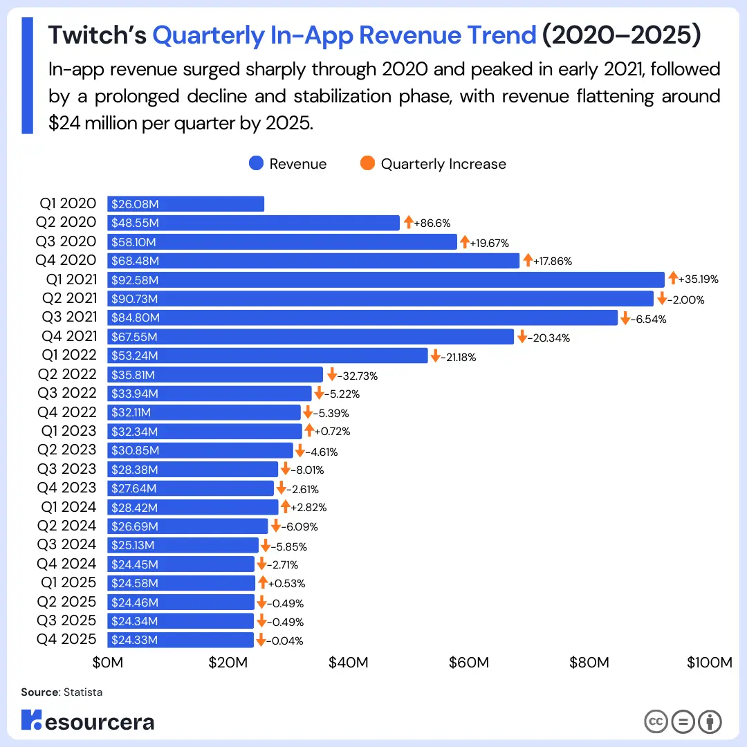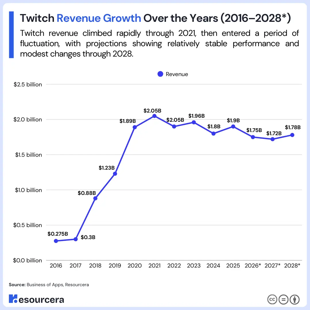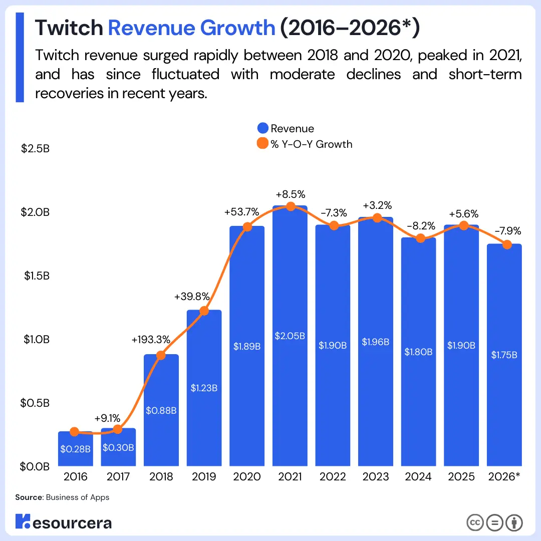 Twitch generated an estimated $1.90 billion in revenue in 2025, up 5.6% from $1.80 billion in 2024. Looking ahead, revenue for 2026…